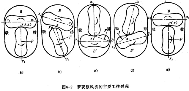 2、轉(zhuǎn)子上每一凹入的曲面部分與氣缸內(nèi)壁組成工作容積,在轉(zhuǎn)子回轉(zhuǎn)過程中從吸氣口帶走氣體。